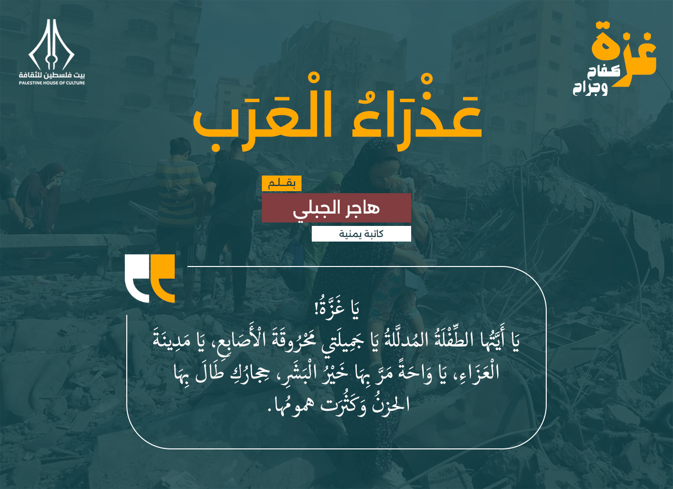 يَا أَيَّتُها الطِّفْلَةُ المُدلَّلةُ يَا جَمِيلَتي مَحْرُوقَةَ الْأَصَابِعِ، يَا مَدِينَةَ الْعَزَاءِ، يَا وَاحَةً مَرَّ بِهَا خَيْرُ الْبَشَرِ، حِجارُكِ طَالَ بِهَا الحزنُ وَكَثُرَت همومُها.